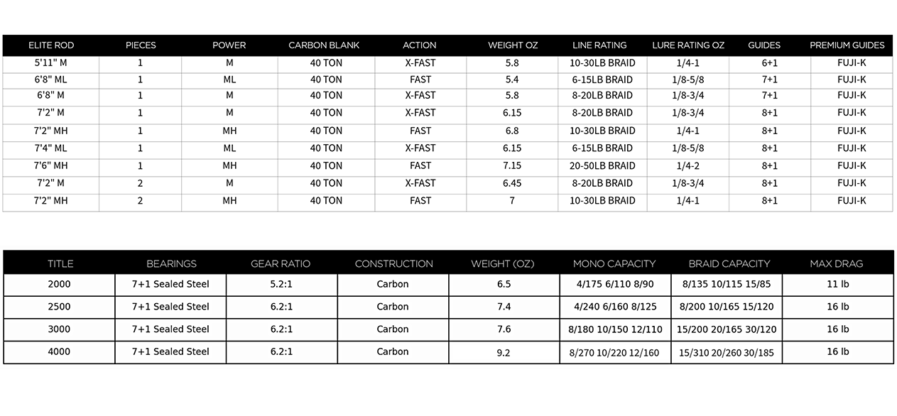 Lighter, more sensitive rods + smoother, stronger reels—the next generation of Toadfish's Elite Spinning Combos is here. Redesigned from the ground up to be lighter, stronger, and more sensitive than ever before, our second generation elite spinning combos boast a 25% weight reduction on the rods and 10% on the reels, delivering faster reactions, longer casts, and less fatigue over long days on the water.
