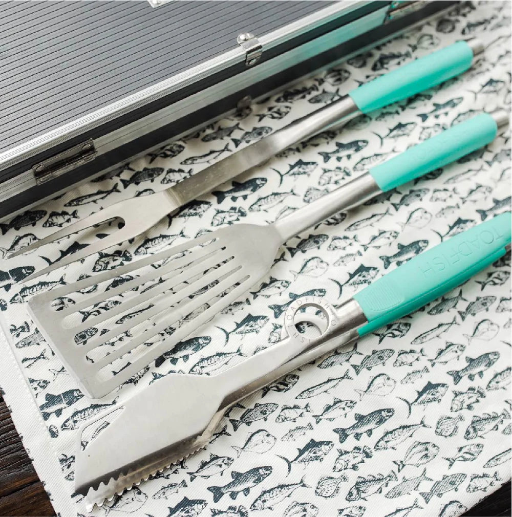 Each piece in this set is a reimagination of traditional designs with new innovative features that will elevate your grilling game. We’ve used the highest quality stainless steel and balanced that with soft-touch inlays to sit securely in the hand.