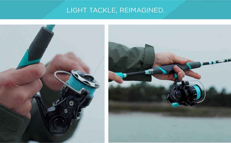 Your new go-to rod and reel combo for light tackle inshore. These versatile rods feature responsive tip sections that are fast enough to feel every bump but not too fast where you pull hooks. They are powerful lightweight rods that load beautifully with consistent bends throughout. They are also built to last with rugged salt-proof components and a revolutionary ergonomic handle that won't chip, tear, or weather.
