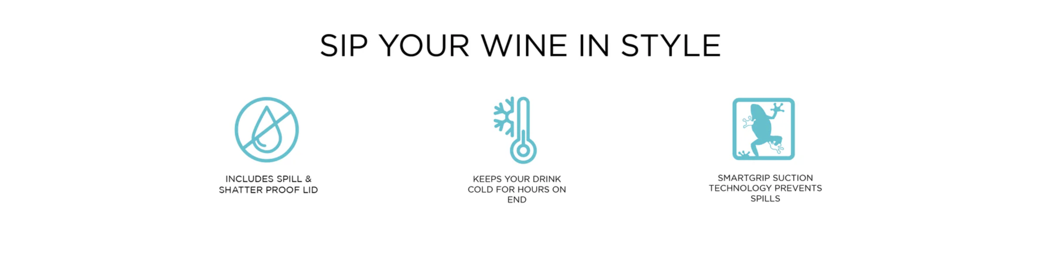 Our innovative SmartGrip® technology will keep your drink upright while the double-walled stainless steel construction keeps your drink perfectly chilled. Designed to enhance the wine's aroma for a better drinking experience!
