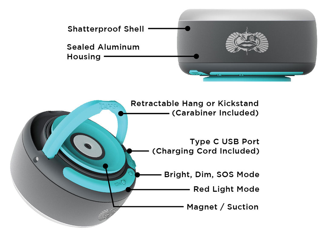 From the boat to the campsite, the Toadfish Stowaway LED Lantern will bring light to any situation. Its versatile design allows it to be used as a handheld flashlight, hanging tent light, utility light, or safety light and can be suctioned or magnetized to most surfaces.